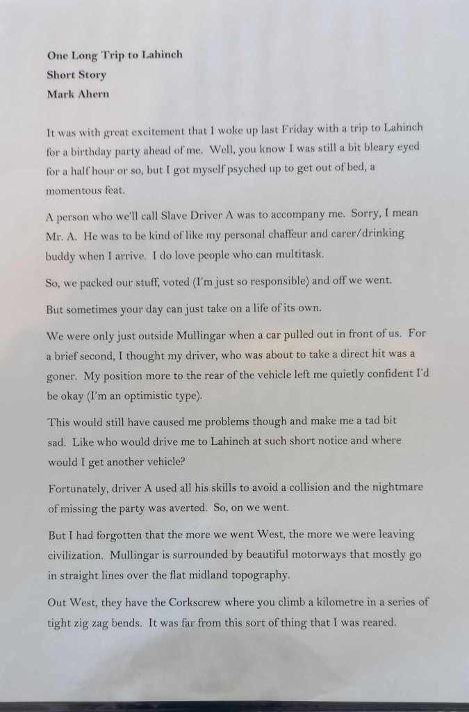 Hi readers, for the first time, one of my short stories has gone on public display. It can be viewed in the Atrium of the County Buildings in Mullingar.
