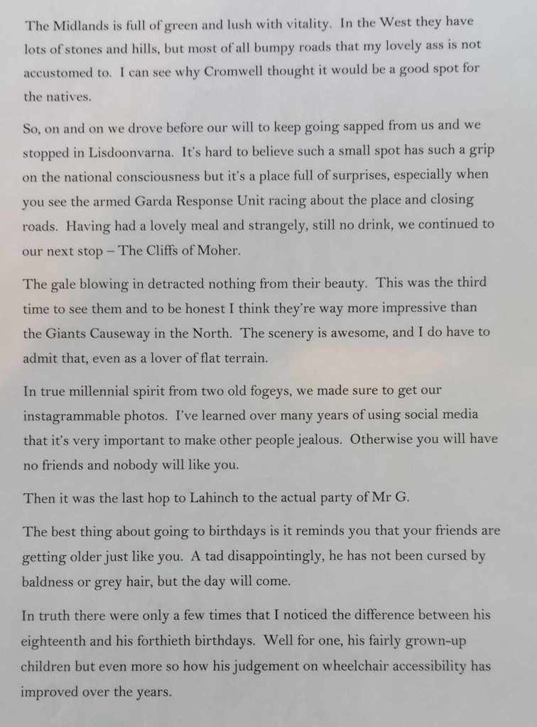 It tell’s the story of my journey to an important birthday of a good friend in Lahinch.