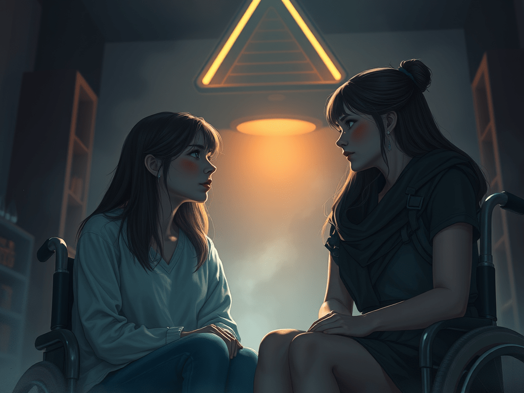 Then, there was Helen from the Cruthin. Her long, blonde hair resting on one of the machine guns mounted on her wheelchairs’ sides. Her disability was caused by a genetic disorder of the muscles. Normally bombastic, she was quiet, her face sullen. The youngest of the team leaders, her position at the helm was still considered unstable.