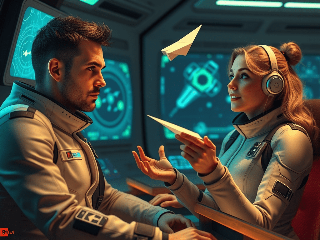 He wonders how Maeve is doing. They haven’t both been online at the same time to communicate. This is not surprising given their shifts and the fact that her spaceship is out of range, close to Earth, some of the time.